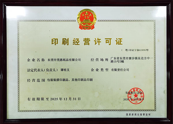 工厂拥有分纸机、薄刀分纸机、双色印刷机、双色全自动印刷机、全自动、半自动开槽机、打角机、啤机、全自动啤机、钉机等设备。我们务实经营得以良好的发展,现拥有一批精干的管理人员和一支高素质的专业技术队伍,人数50人,也有舒适优雅的办公环境和现代化生产经营场所,日常经营过程中我们严控质量关,市场范围不断扩大,销售金额已到4000万/年。东莞市莞恩纸品有限公司以诚信、实力和质量获得业界的认可。