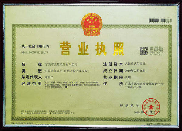 莞恩纸品有限公司本着:“质量求生存,信誉谋发展”的经营理念。推进质量、管理、服务体系不断完善,不断创新,不断进步的质量方针,竭诚为广大用户服务。